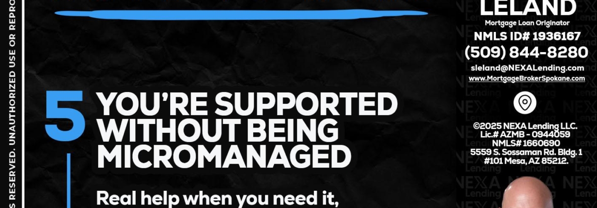 7 THINGS (5) - Sean Leland -Mortgage BrokerHi, my name is Sean Leland. I’m a Loan Officer with NEXA Lending LLC., offering personalized mortgage solutions, fast customized quotes, great rates and service with integrity.
