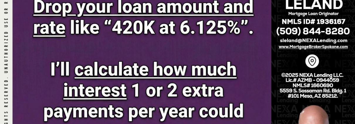 ONE EXTRA - Sean Leland -Mortgage BrokerHi, my name is Sean Leland. I’m a Loan Officer with NEXA Lending LLC., offering personalized mortgage solutions, fast customized quotes, great rates and service with integrity.
