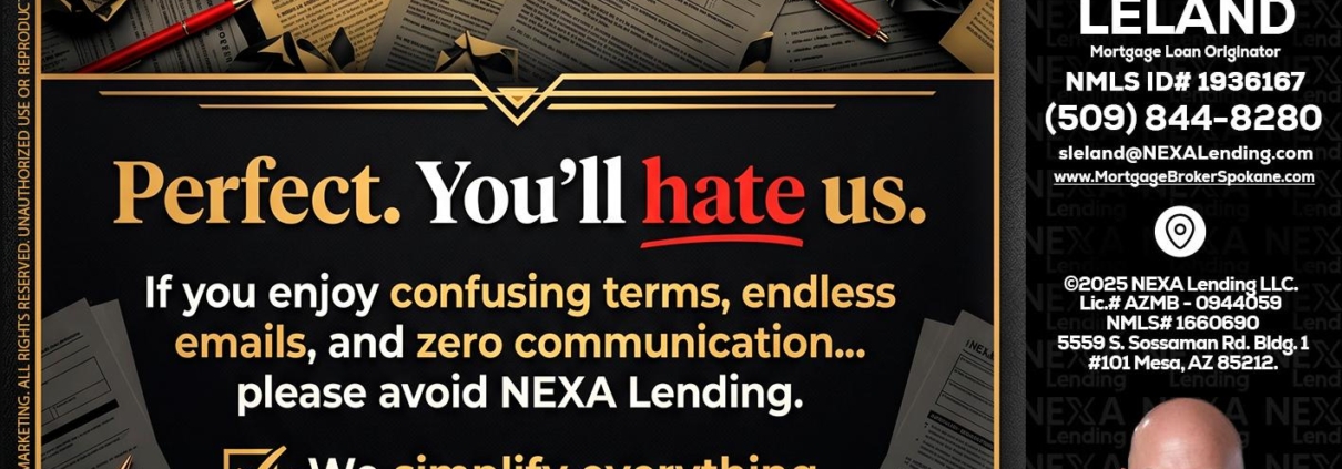Hi, my name is Sean Leland. I’m a Loan Officer with NEXA Lending LLC., offering personalized mortgage solutions, fast customized quotes, great rates and service with integrity.